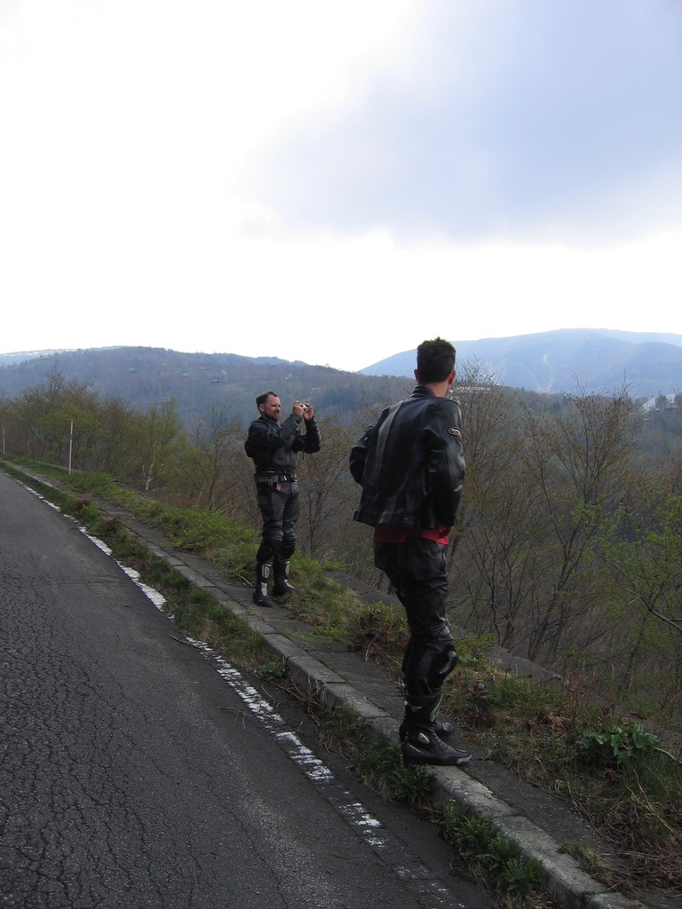 Out on the rougher roads of Nagano as bikers stop to take photos.